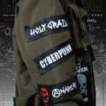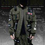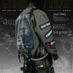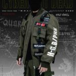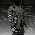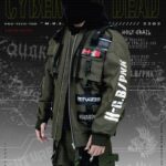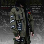 BOMBER JACKET WITH DETACHABLE COTTON FLEACE HOODIE AND PATCH (WHITE & RED PRINTED)