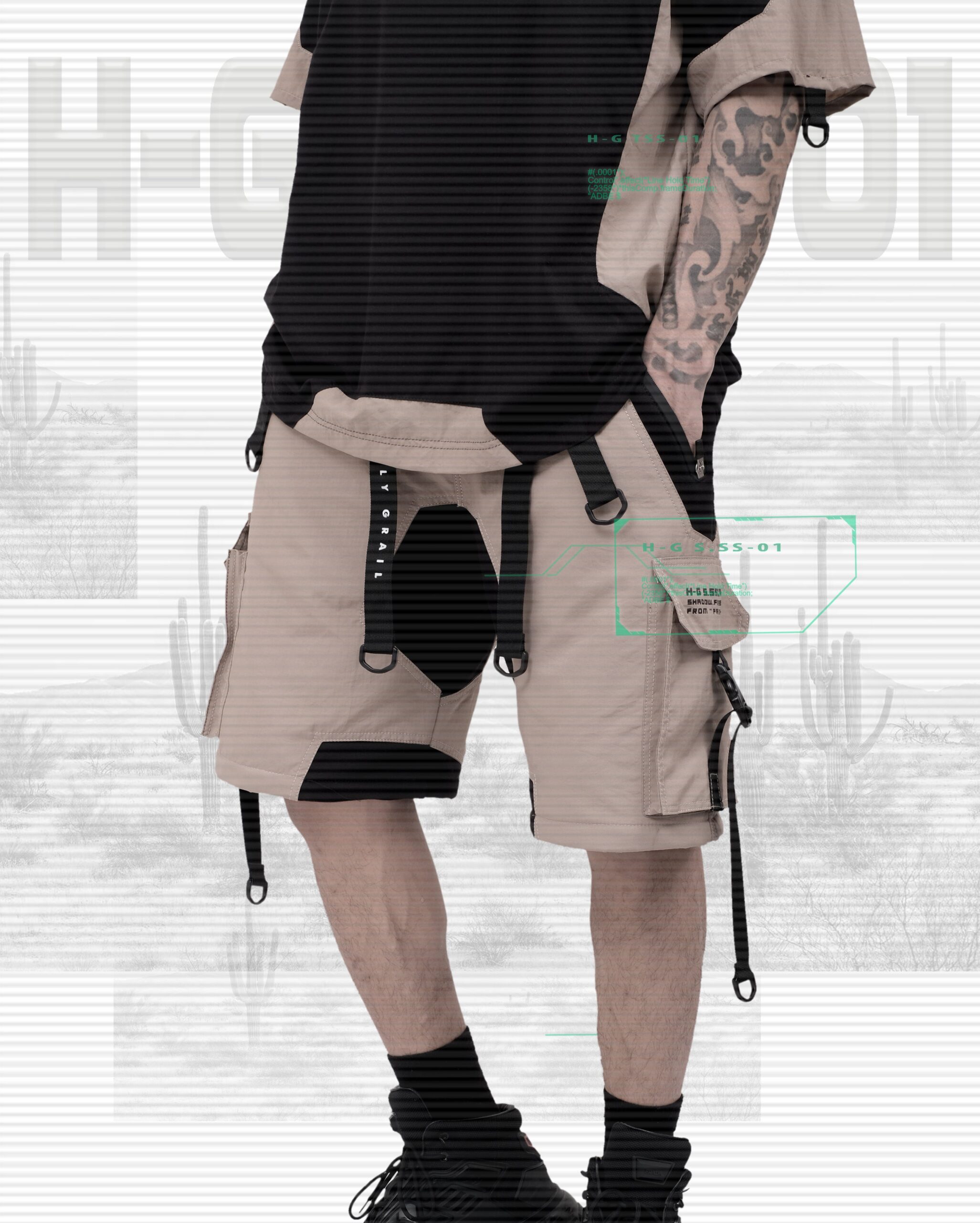 H-G S SS-01 CREAM AND BLACK SHORT PANTS
